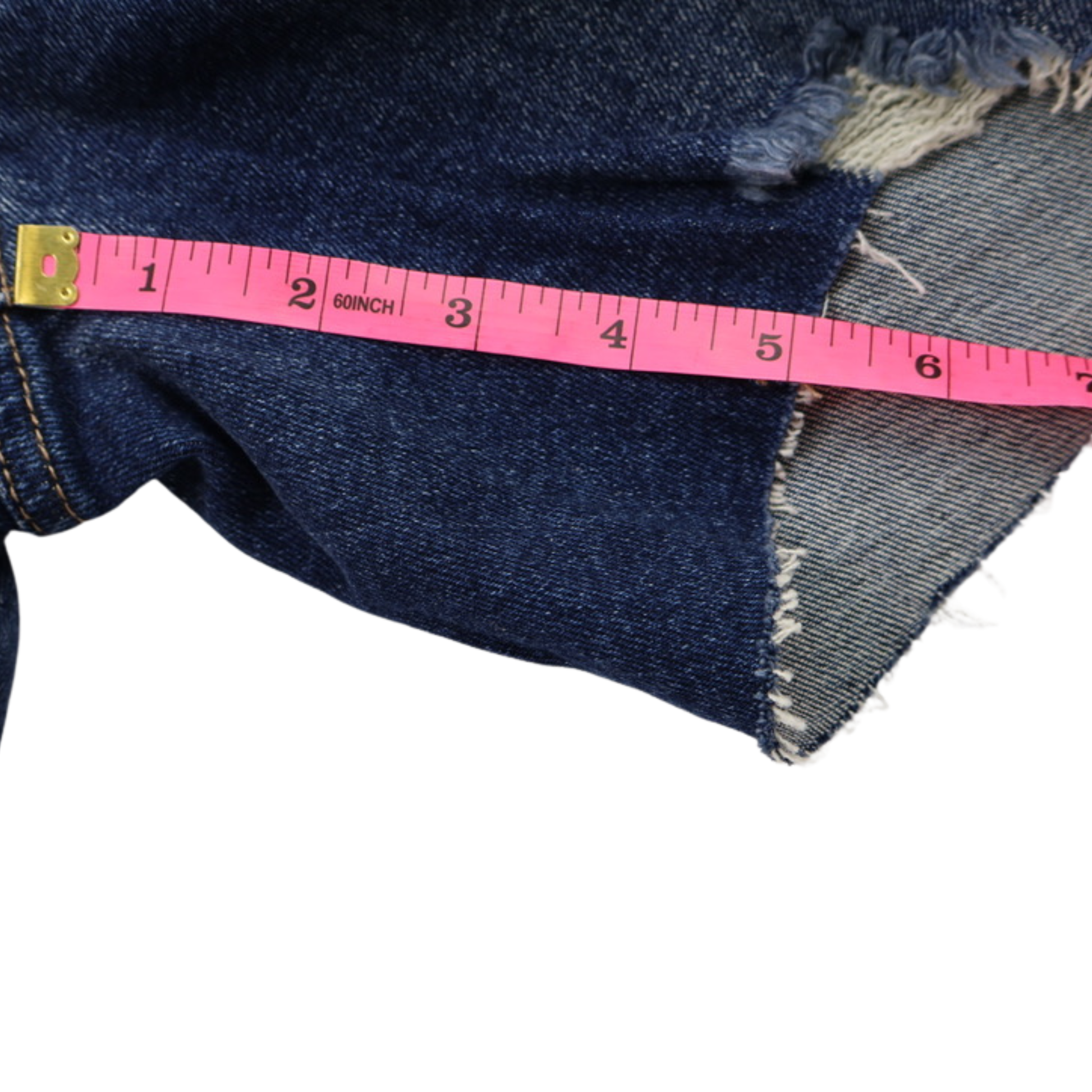 • Raw frayed hem